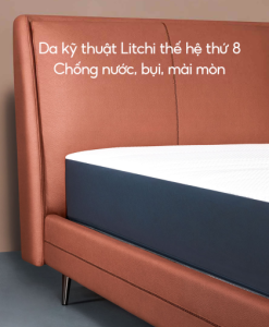 Phần da bọc đầu giường và xung quanh giường được làm từ chất liệu da kỹ thuật Litchi thế hệ thứ tám, có kết cấu và cảm giác giống hệt da thật. Da litchi thoáng khí và có thể chống mài mòn, chống nước, chống dầu, chống bám bẩn, vô cùng thân thiện với da người.