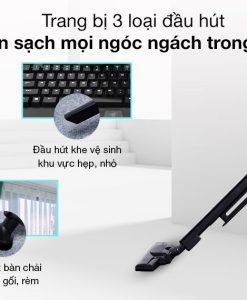 Trang bị 3 đầu hút linh hoạt: hút khe, hút sàn và đầu hút bàn chải giúp thay đổi để làm sạch nhiều vị trí mong muốn