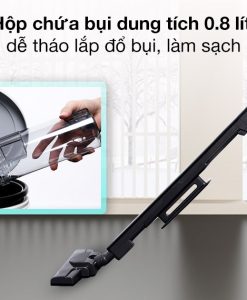 Hộp chứa bụi dung tích 0.8 lít giúp chứa được nhiều hơn trong 1 lần hút, dễ dàng tháo lắp đổ bụi, làm sạch