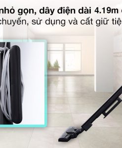 Ngoài ra, vỏ máy được làm bằng nhựa ABS bền bỉ và hạn chế bám bẩn. Dây điện 4.19m di chuyển linh hoạt trong quá trình sử dụng.