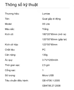 Quạt có thiết kế nhỏ gọn (18 x 2 x 9 cm), dễ mang theo. Gập gọn thành quạt để bàn, góc nghiêng 70°, mang lại luồng không khí chính xác và thoải mái.