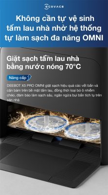 Robot hút bụi lau nhà Ecovacs Deebot X5 Pro Omni mang lại trải nghiệm làm sạch toàn diện nhờ tính năng giặt giẻ lau bằng nước nóng 70°C được cải tiến.