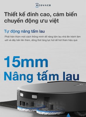 Robot hút bụi lau nhà Ecovacs Deebot X5 Pro Omni có tính năng nâng thảm tự động lên tới 15mm, giúp việc vệ sinh trở nên dễ dàng hơn.