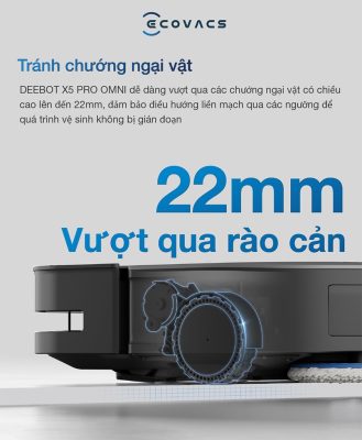 Ngoài ra, robot hút bụi lau nhà X5 Pro Omni có khả năng vượt qua các chướng ngại vật ở ngưỡng cao lên đến 22mm, nhờ vào cảm biến chỉ đường liền mạch.