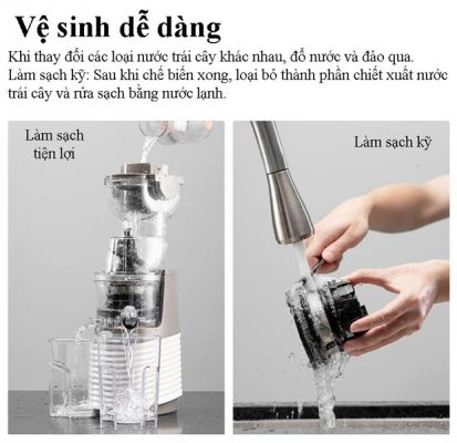 Với cơ chế tách nước kênh đôi giúp bạn không cần phải lọc bằng tay mà nước và bã được tách ra riêng biệt và không còn lợn cợn trong ly nước ép gây cảm giác khó chịu khi uống.