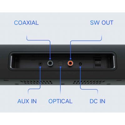 Bộ loa cũng hỗ trợ kết nối với các thiết bị khác qua các phương thức kết nối như COAXIAL, AUX IN, OPTICAL. Bạn có thể dễ dàng thao tác qua cổng kết nối được thiết kế phía sau của loa, ưu điểm này sẽ mang lại nhiều sự thuận tiện hơn cho mỗi nhu cầu sử dụng khác nhau của người dùng.
