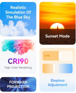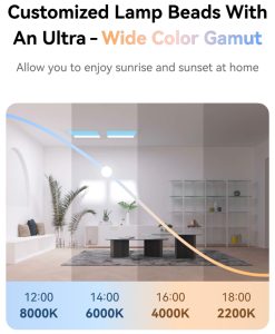 Đèn cung cấp nhiều nhiệt độ màu từ 1600K đến 8000K để phản ánh chính xác màu sắc của ánh sáng tự nhiên vào các thời điểm khác nhau trong ngày.