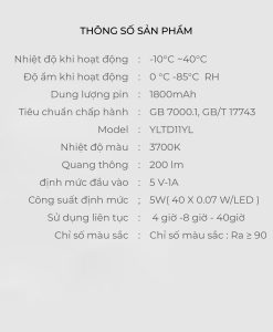 - Đèn bàn học Yeelight Z1 YLTD11YL có tuổi thọ pin lâu dài, tích hợp pin lithium dung lượng lớn 1800mAh