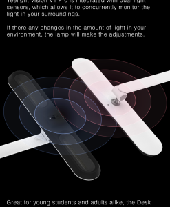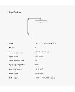 Đèn bàn thông minh Yeelight LED Vision Desk Lamp V1 Pro phiên bản cải tiến với cảm ứng ánh sáng tối ưu. Đèn bàn Yeelight V1 Pro được thiết kế thân gập và thanh đèn có thể thay đổi góc chiếu. Yeelight V1 Pro có công suất 12W 3000 – 5000K Ra95. Nguồn sáng này phù hợp cho mọi hoạt động, chỉ số Ra95 giúp ánh sáng lên chuẩn, không bị nhiễu thân thiện với mắt.