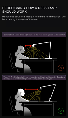 Yeelight luôn có những thiết kế phù hợp với nhu cầu của người dùng. Không còn các chụp đèn truyền thống, tiết kiệm tối đa không gian sử dụng. Thân đèn với tay đòn có thể thay đổi độ cao phù hợp cho mọi hoạt động. Phần đèn là 2 đèn LED chất lượng cao giúp phân tán ánh sáng đồng đều. Thiết kế của đèn Yeelight V1 Pro sẽ làm cho ánh sáng tập trung vào mặt bàn, không làm người dùng bị lóa mặt bởi các tia sáng bị dư ra từ mặt đèn.