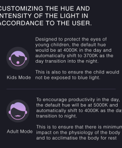 Đèn bàn thông minh Mi có có thêm chế độ đình chỉnh ánh sáng phù hợp với trẻ em. Đối với trẻ em thì sự phát triển của chúng vẫn chưa hoàn thiện. Vì vậy chúng ta cần cho trẻ một chế độ ánh sánh thích hợp của ánh sáng.