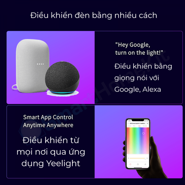 - Cung cấp cho người dùng phương thức điều khiển đa dạng: Google Assistant, Samsung SmartThings, Apple Homekit, Yeelight Smart Dimmer,…