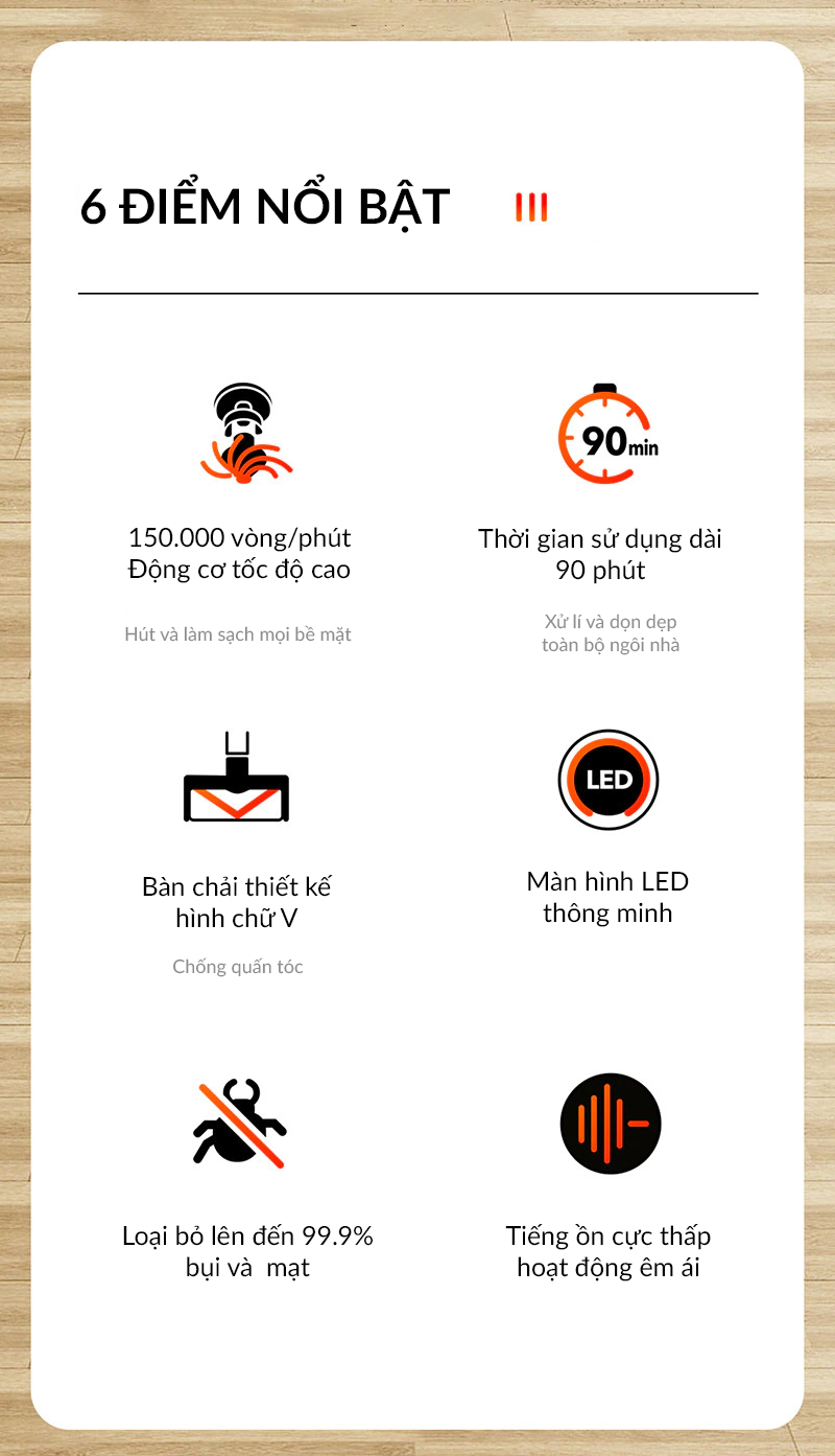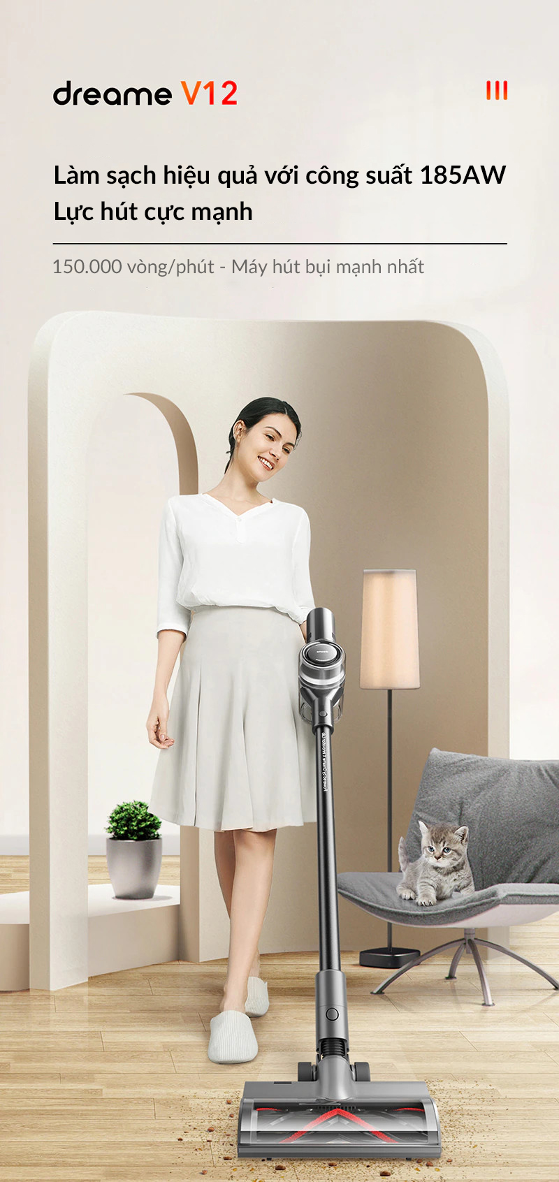 - Hút sạch với công suất 185AW động cơ không chổi than mạnh mẽ 150,000 vòng/phút