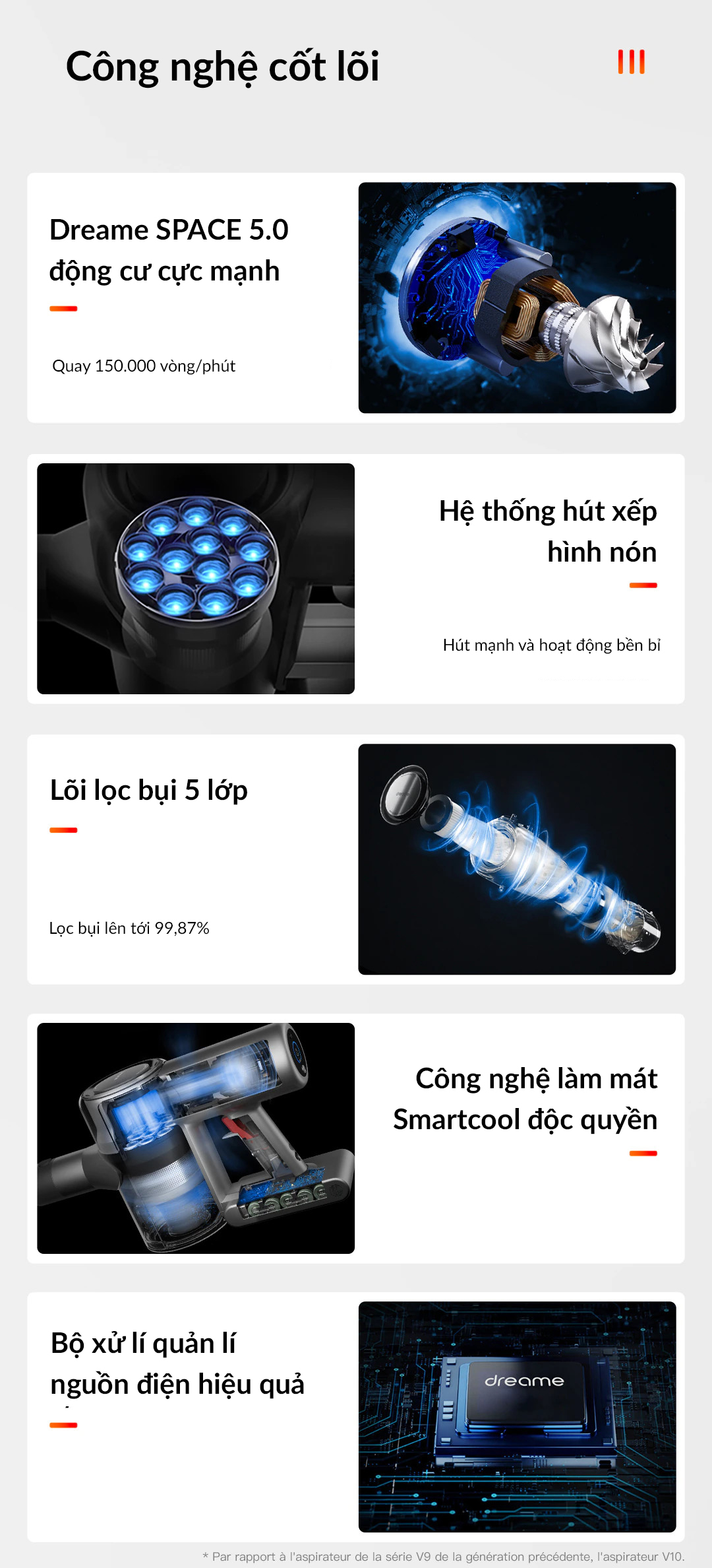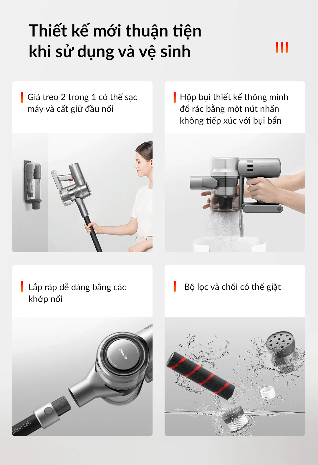 - Hút sạch với công suất 185AW động cơ không chổi than mạnh mẽ 150,000 vòng/phút