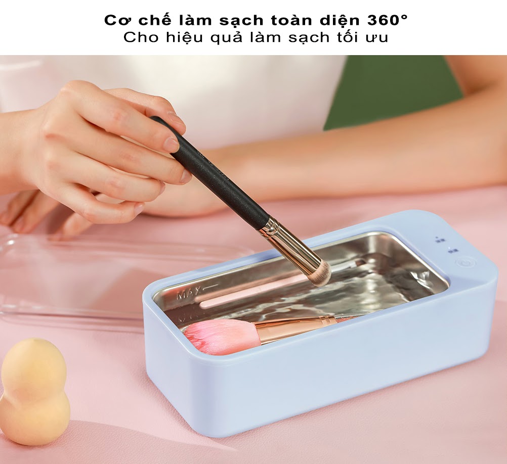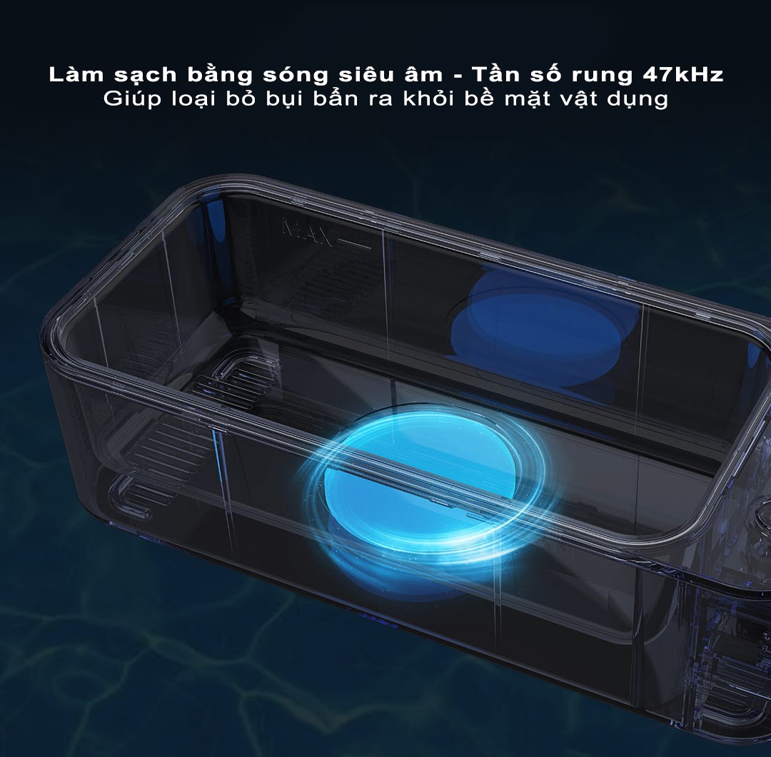 Đặc biệt, công nghệ làm sạch bằng sóng siêu âm này còn giúp vệ sinh vật dụng toàn diện 360°, mang đến hiệu quả làm sạch cao mà không bỏ sót bất kì vết bẩn nào.