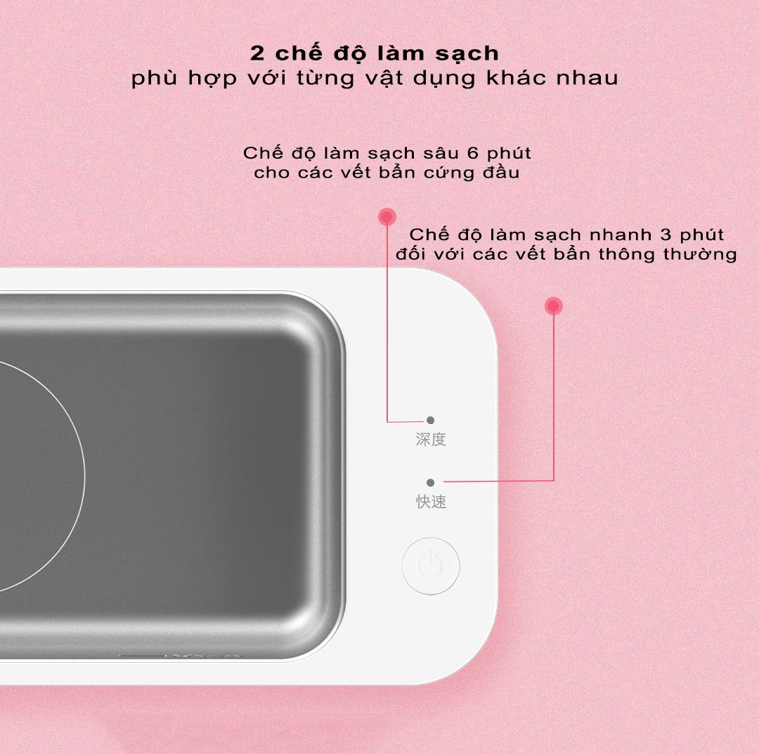 Thiết bị làm sạch có thể điều chỉnh 2 cấp độ làm sạch khác nhau, phù hợp với nhiều vật dụng cũng như nhu cầu làm sạch. Bao gồm chế độ làm sạch nhanh 3 phút cho các vết bẩn thường và chế độ làm sạch sâu 6 phút đối với các vết bẩn cứng đầu.