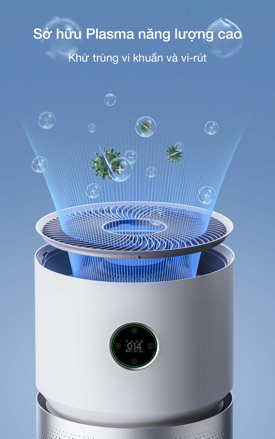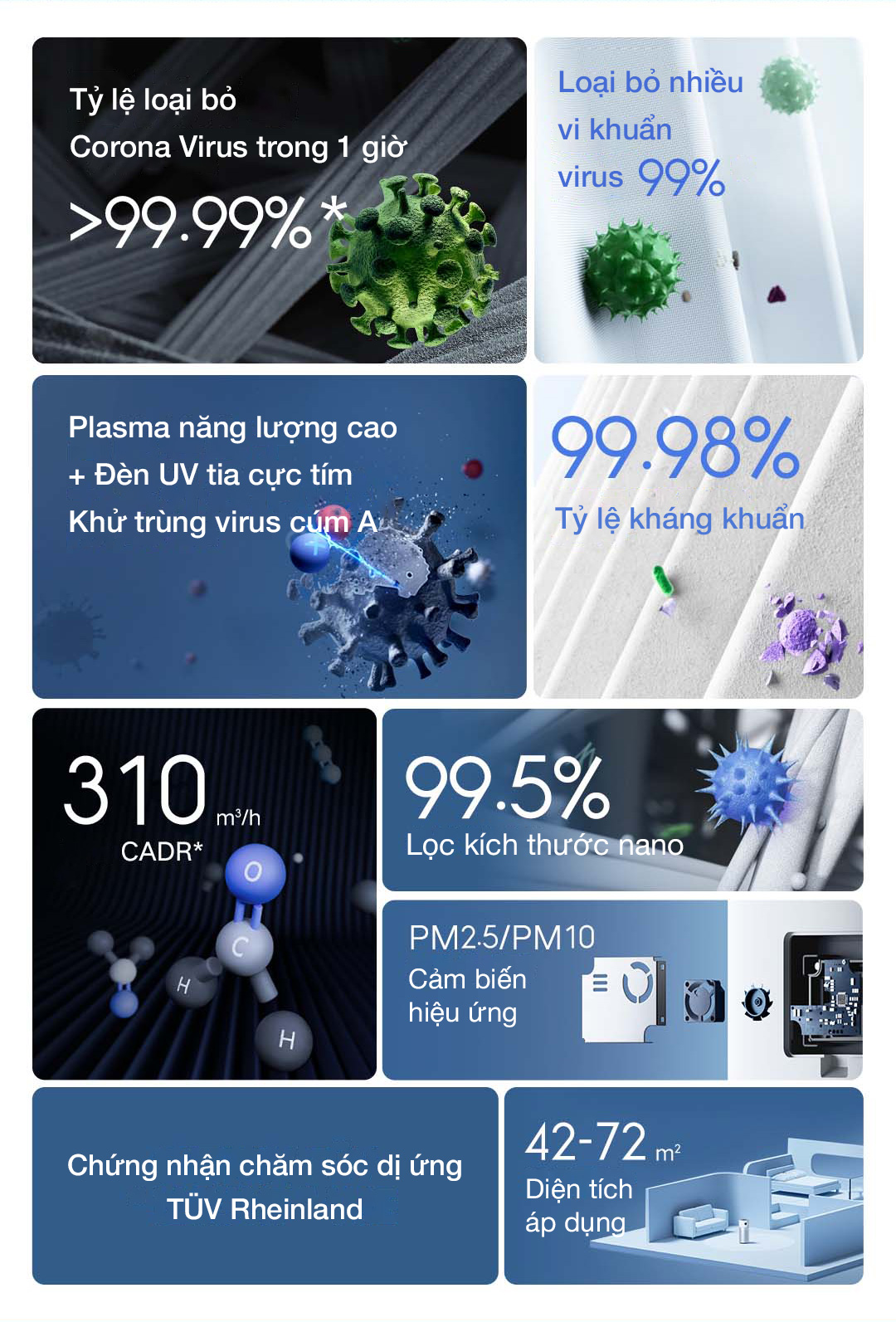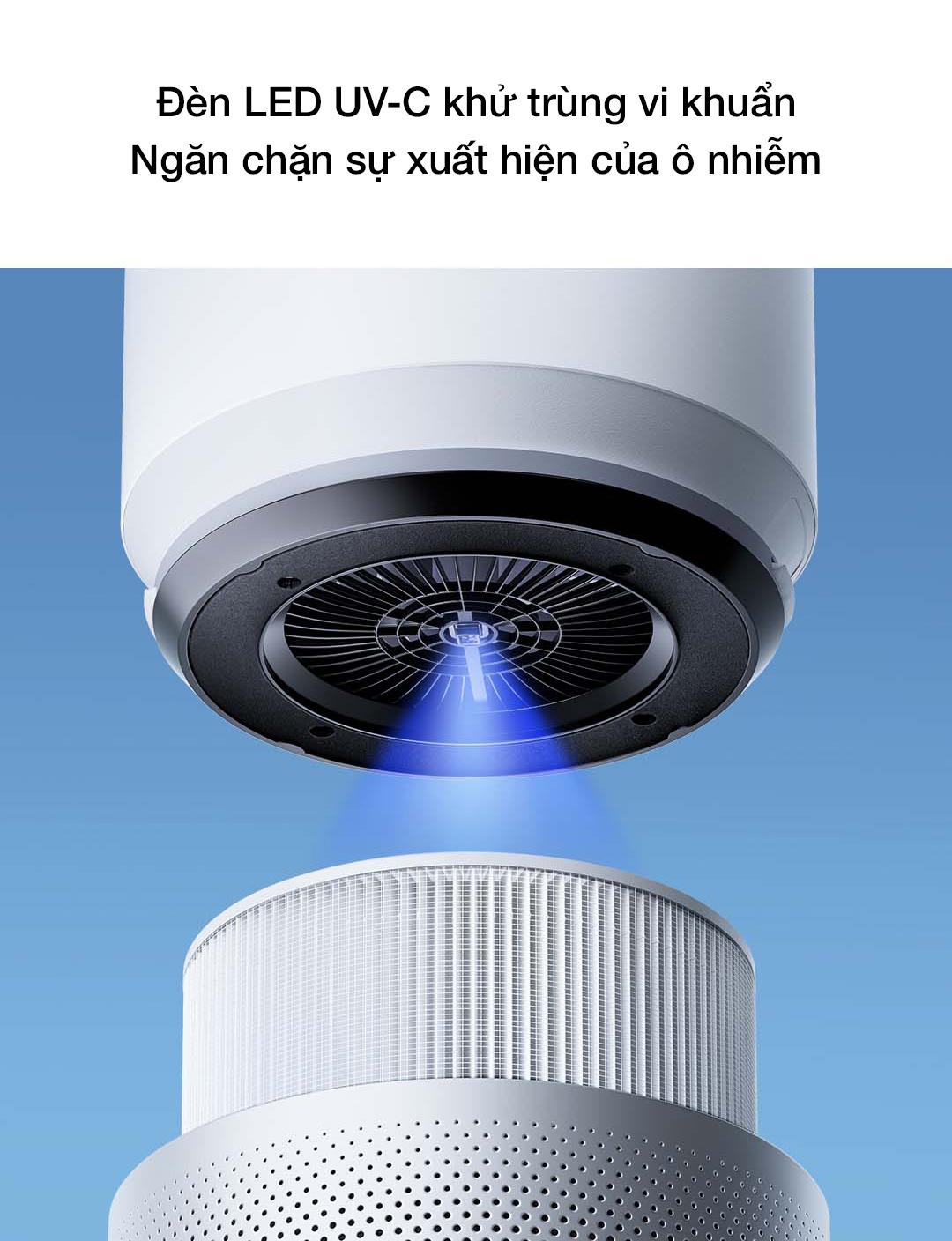 Nhờ cảm biết kép PM2.5/PM10, đèn uv khử trùng và các ion làm sạch triệt để.
