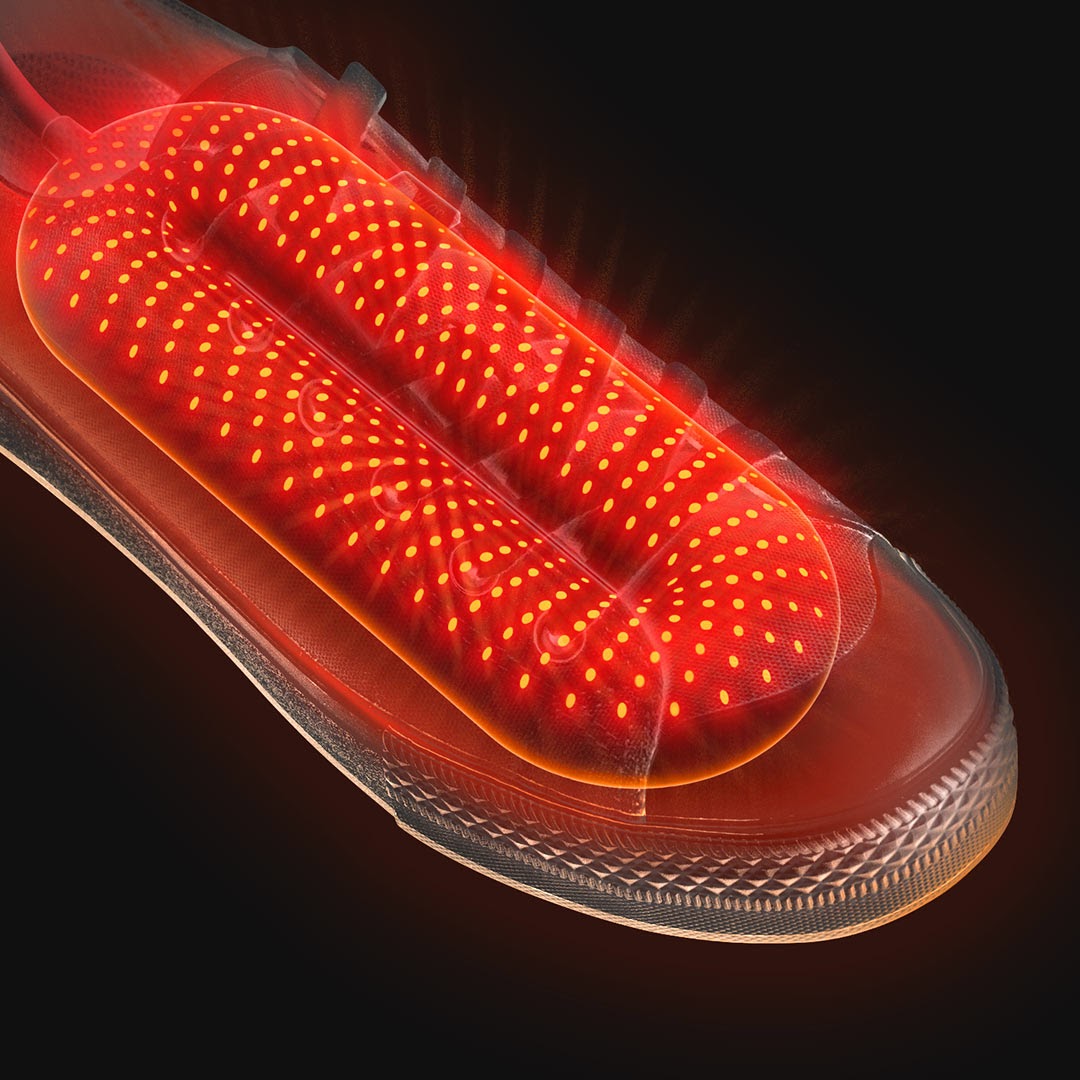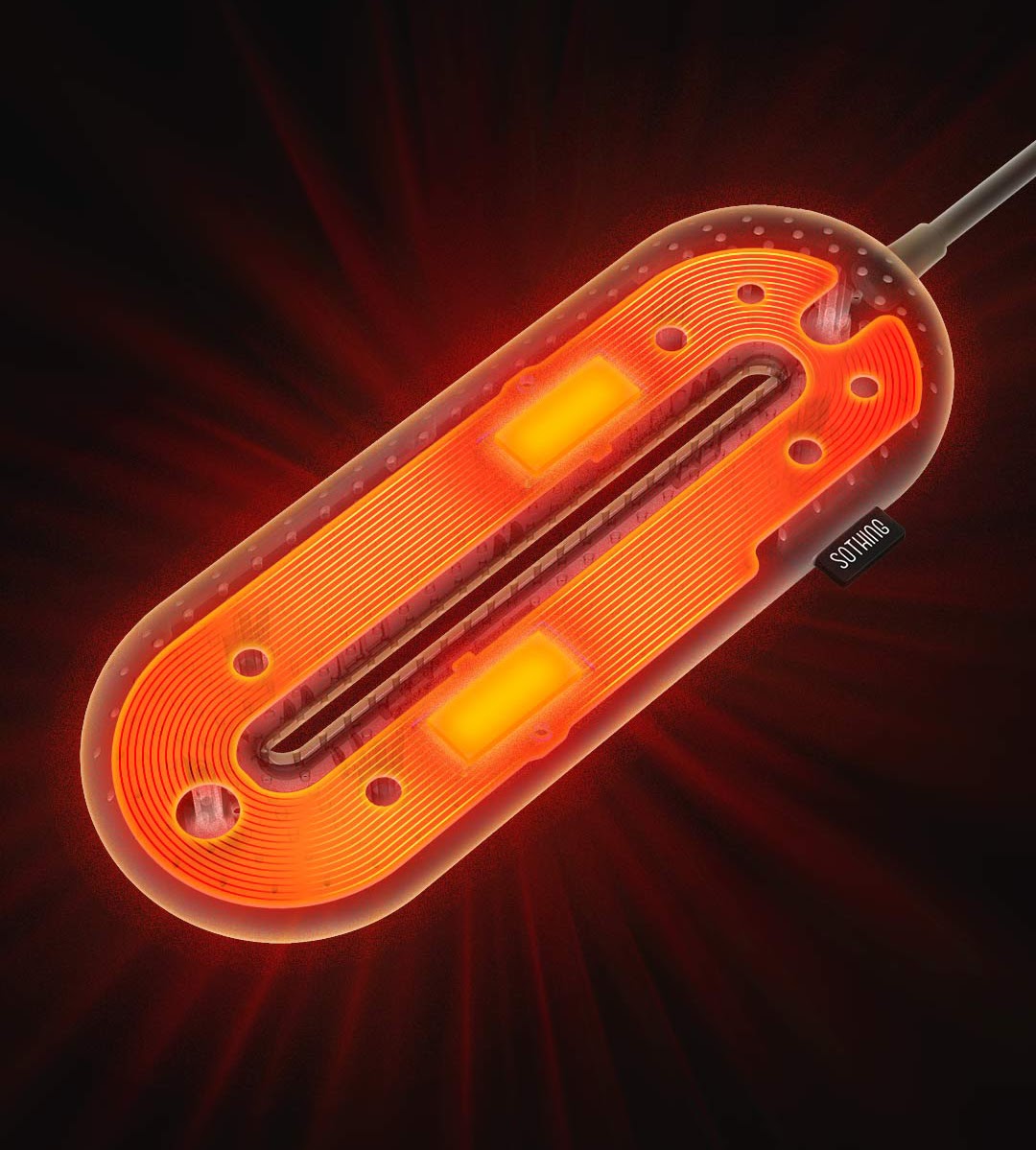 Mỗi máy sấy giày Sothing được tích hợp 2 bộ phận làm nóng PTC tương ứng ở 2 đầu vòng đệm với khả năng tản nhiệt đều, làm khô giày một cách nhanh chóng. Cụ thể nhiệt độ lõi của bộ phận làm nóng PTC cao đến 150 °C và bề mặt của máy sấy giày luôn duy trì nhiệt độ ổn định ở mức 55 °C. Nhiệt độ này đạt mức vừa phải, không làm hỏng thân giày khi hút ẩm, không làm bỏng tay khi người dùng thao tác nhưng vẫn cho hiệu quả sấy khô nhanh chóng.