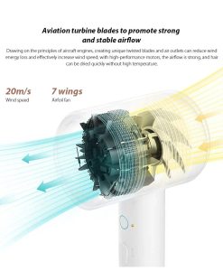 Về thông số kỹ thuật, tiện ích sử dụng thân máy siêu ngắn chỉ dài 9,5cm. Nó sử dụng một động cơ tốc độ cao, hiệu suất cao với tốc độ lên đến 18000 vòng / phút và tốc độ gió lên đến 20m / s. Nó sử dụng một quạt 6 cánh với các cánh tuabin hàng không. Nó hỗ trợ kiểm soát nhiệt độ 60 lần mỗi giây và chăm sóc tóc ở nhiệt độ không đổi 57 độ.