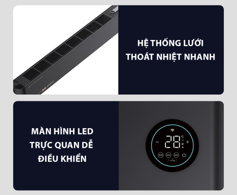 Công tắc nguồn và cảm biến bảo vệ quá nhiệt cũng được tích hợp. Máy sưởi sẽ tự động ngắt điện khi thân máy nghiêng quá 45° hoặc nhiệt độ bên trong vượt quá 85°C, để bảo vệ an toàn cho người dùng và thiết bị. Chuẩn bảo vệ IPX4 cùng cấu trúc bên trong hoàn toàn khép kín, kênh thoát nước chuyên dụng, đảm bảo an toàn mạch điện tốt hơn trước các tác động từ bên ngoài