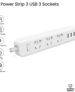Mi power strip được thiết kế với 3 jack cắm điện, cắm được các phích cắm từ 2 chấu đến 3 chấu, tròn hay dẹp đều có thể cắm được. Ngoài ra còn được tích hợp 3 khe cắm USB.