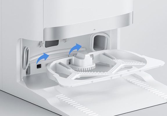 Ngoài ra, thiết bị cũng tự động nâng cao khăn lau khi hoạt động trong chế độ chỉ hút hoặc khi trở về trạm sạc giặt khăn lau, ngăn chặn tình trạng ô nhiễm thứ cấp.