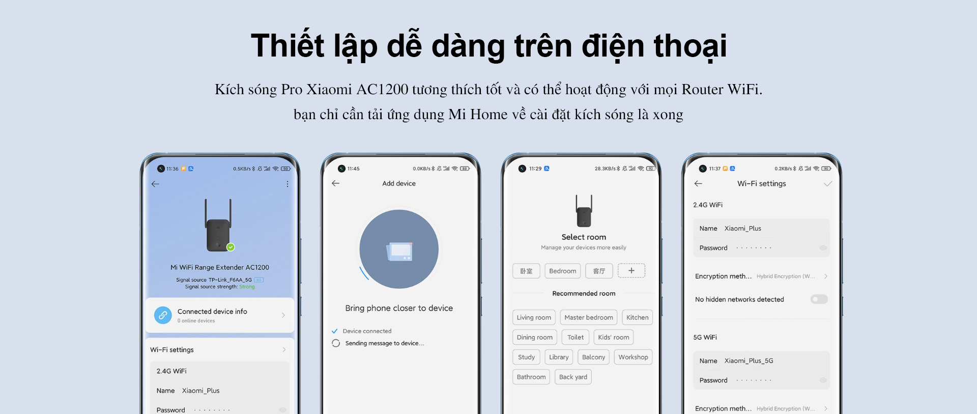 Kích sóng băng tần kép Xiaomi AC1200 có khả năng kết nối với nhiều loại router khác nhau, cũng như kết nối với những thiết bị kích sóng cùng loại khác. Cộng với hình thức kết nối không dây đã giúp cho thiết bị dễ dàng tương thích và bắt phủ sóng trên một diện tích rộng lớn. Thêm vào đó, tốc độ truyền tải lên đến 867 Mbps với mạng 5G và 300 Mbps với mạng 2.4G của thiết bị chắc chắn sẽ khiến người dùng hài lòng.