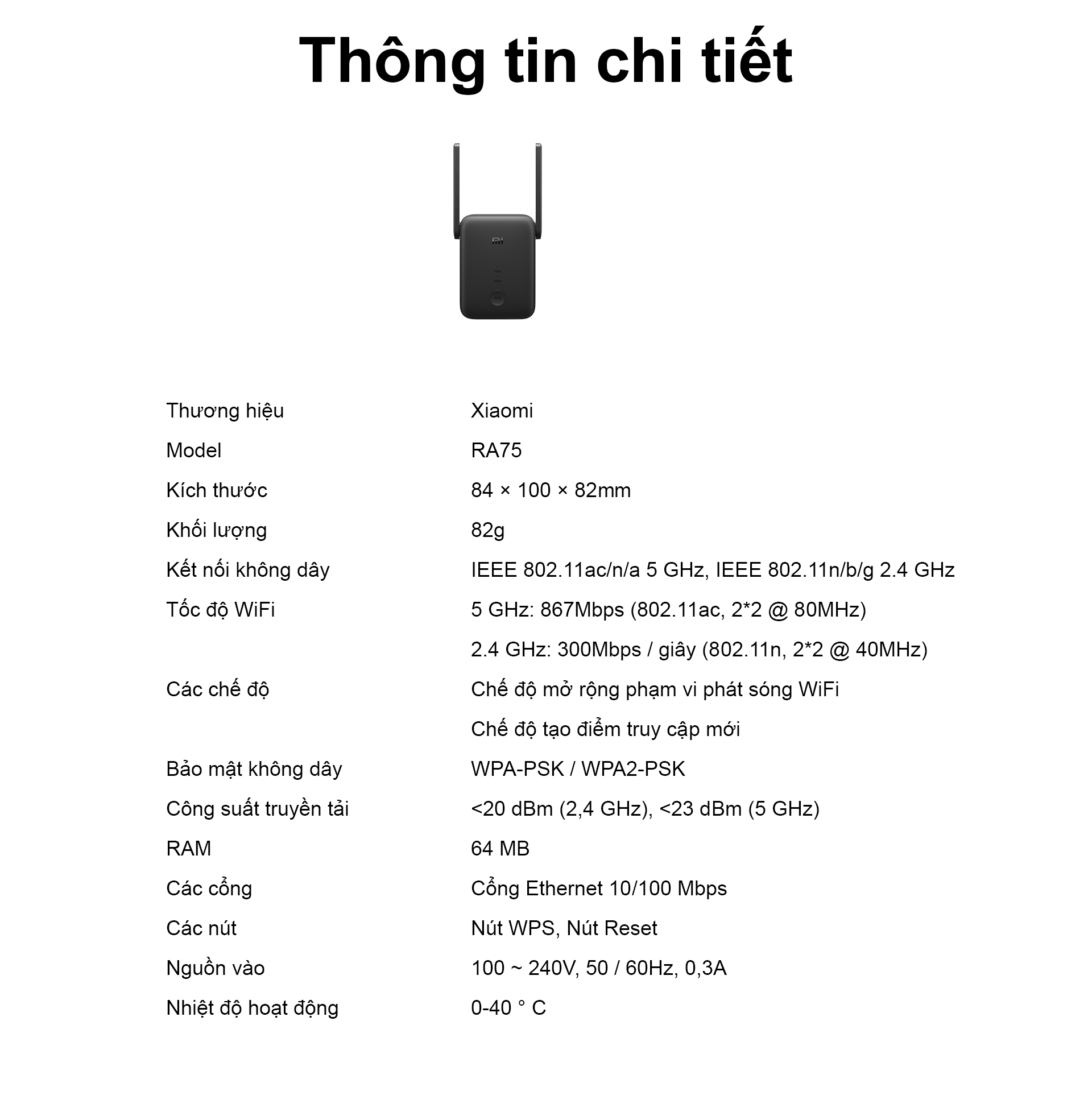 - Thông số chi tiết Mi Wifi Range Extender AC120