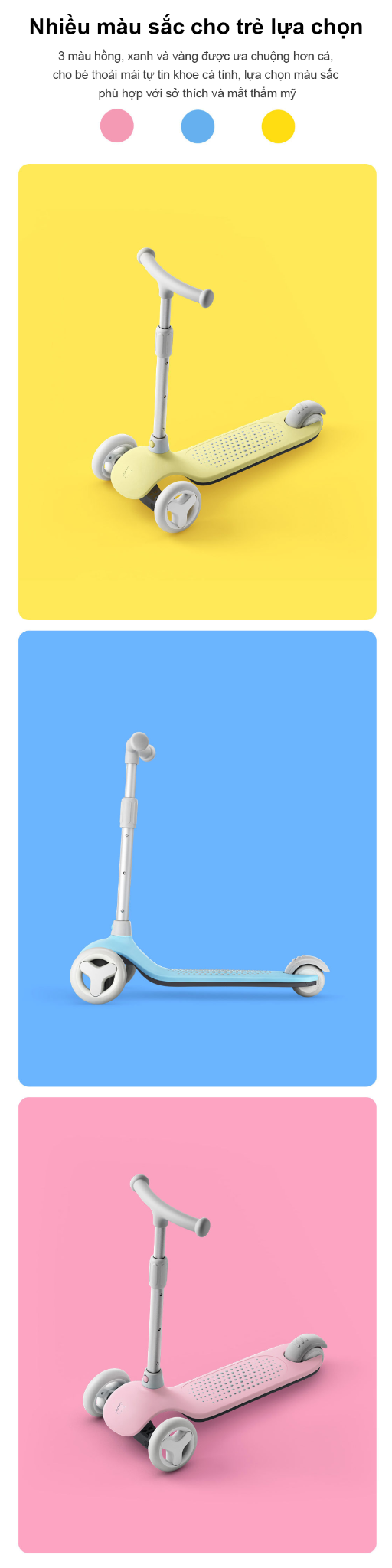 Xe scooter 3 bánh cho bé Xiaomi Mitu với khả năng linh hoạt thay đổi 3 mức chiều cao thích hợp sử dụng cho lứa tuổi từ 3 đến 8 tuối, dễ dàng chơi sử dụng, điều hướng dễ dàng bằng thanh cầm, hệ thống phanh thông minh, bàn để chân tích hợp 129 điểm chống trượt an toàn…