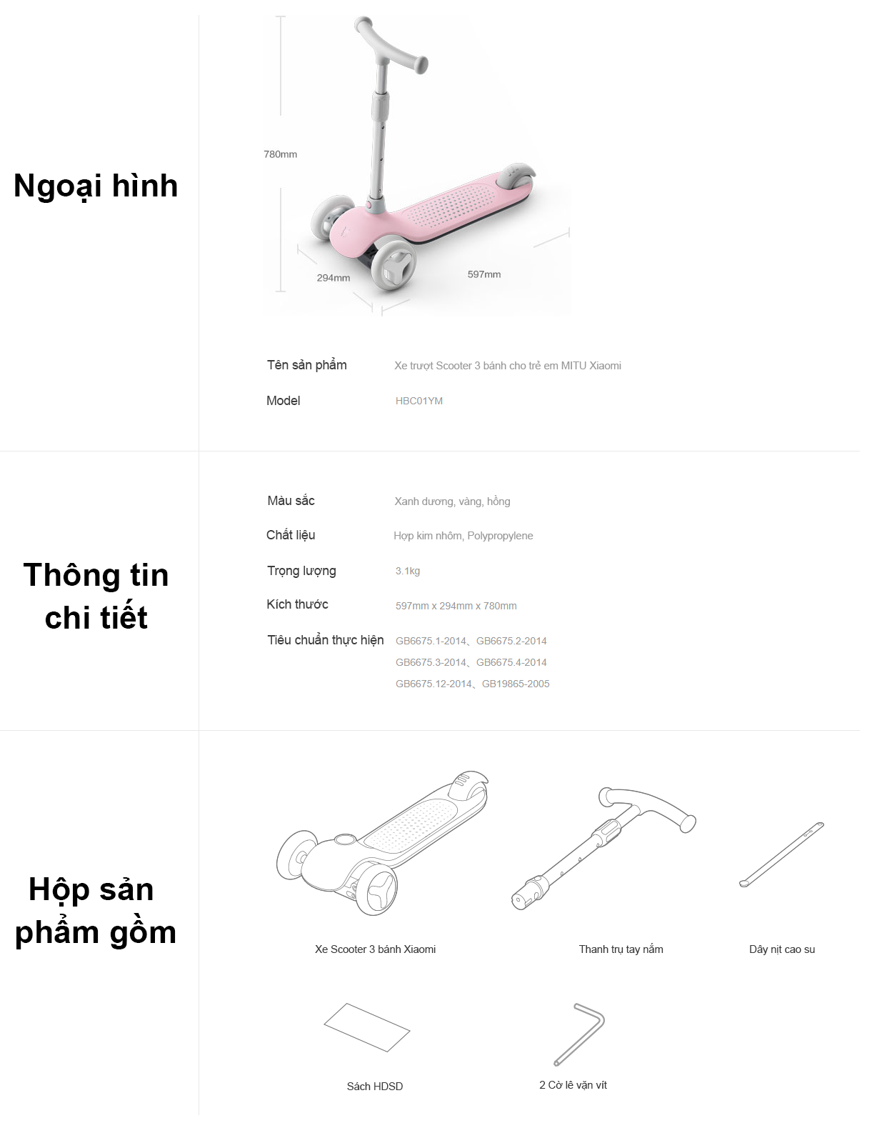 Thông số sản phẩm Xe trượt Scooter 3 bánh cho trẻ em MITU Xiaomi